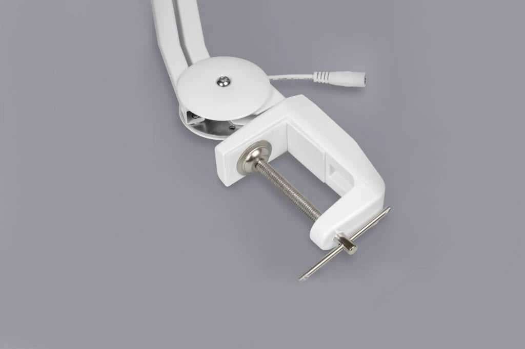 • Braço articulado em 2 pontos para direcionar a iluminação conforme a necessidade